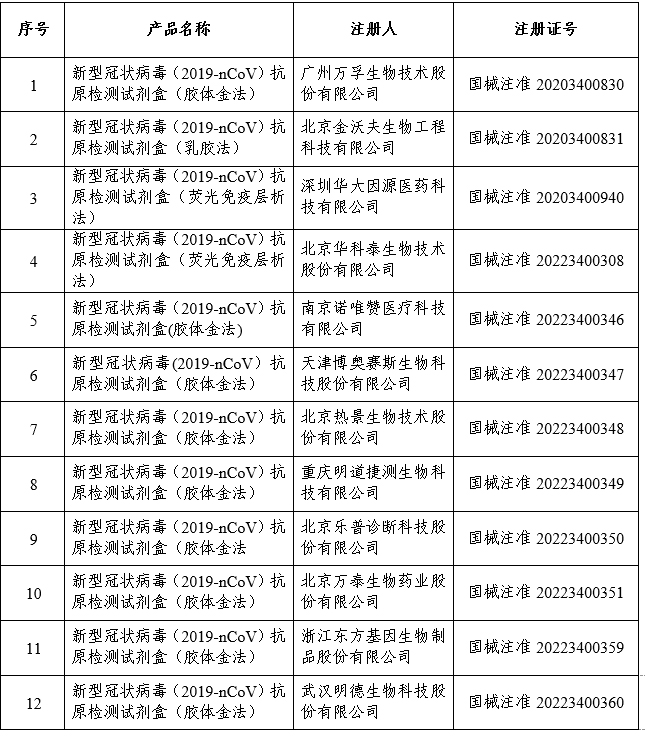 國家藥監(jiān)局已批準(zhǔn)的新冠病毒抗原檢測試劑